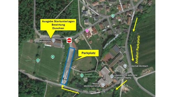 Die Startunterlagen werden im Wombacher Vereinsheim, Zur Wolfswiese in Lohr-Wombach ausgegeben. Nachmeldungen am Start sind möglich, so lange das Teilnehmerlimit nicht erreicht ist.